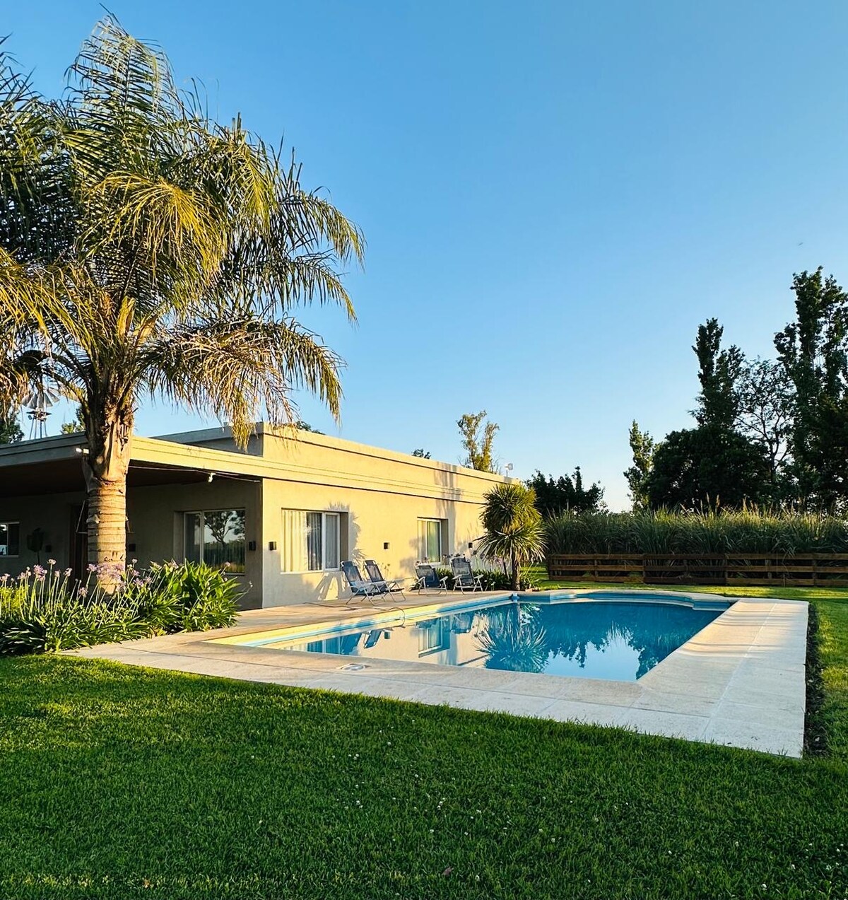 Disponibilitate imediată. Casă de țară privată cu piscină, grătar, șemineu cu lemne, parcare și Starlink. La doar 4 km de centrul orașului Pergamino, înconjurat de verdeață și liniște. Dormitor principal închis și un al doilea spațiu integrat cu paturi de o persoană. Baie interioară și baie exterioară lângă piscină. Aer condiționat/încălzire, plase de țânțari, spălătorie, bucătărie utilată și living spațios. Un loc conceput pentru a te odihni, a te deconecta și a te bucura de intimitate totală.