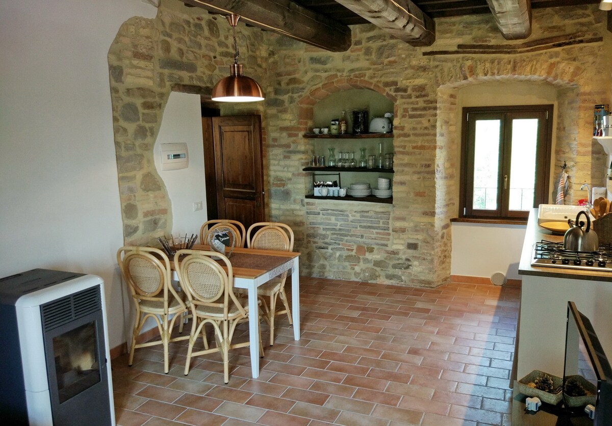 Bine ai venit în apartamentul nostru fermecător din Fattoria Fontenovo din Umbria, dealuri proaspete!Acest refugiu confortabil la ferma noastră istorică Fontenovo, deținută de familia noastră de peste 100 de ani, oferă amestecul perfect de intimitate și liniște. Unele zone ale vilei spațioase rămân neocupate, iar altele sunt rezervate pentru uzul tău. În timpul șederii, veți fi singurii ocupanți, cu excepția proprietarilor care pot fi ocazional într-o altă parte a casei. Bucură-te de grădinile luxuriante, de piscina privată și de peisajul rural liniștit.