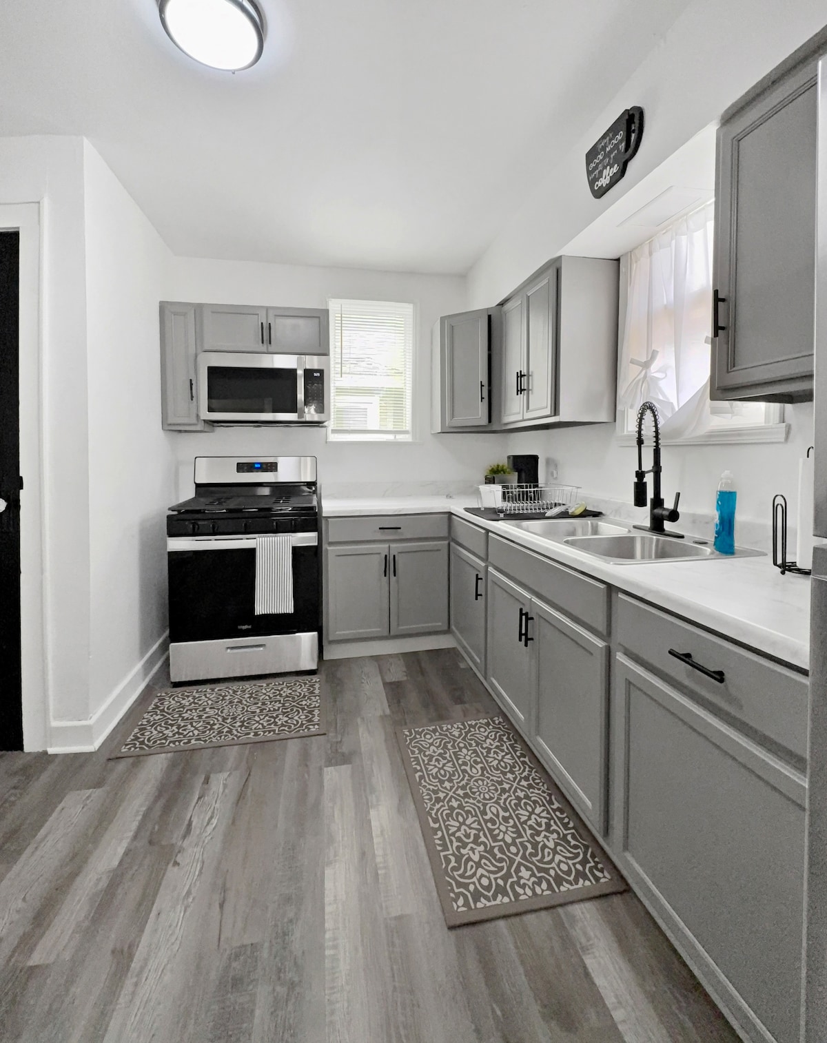 În primul rând, acesta este un apartament privat. Nu este împărtășită cu nimeni ! Un loc frumos și confortabil, cu o bucătărie cu toate ammeditățile . Luminatoarele fac din acest loc un loc luminos și vesel, indiferent de sezon. Mașină de spălat și uscător cu un dulap mare. Un tren trece prin aproximativ o milă distanță de câteva ori pe zi. O poți auzi de la distanță. Nici măcar nu observ, dar am vrut să notez . NU REZERVĂM LOCALNICILOR! Trebuie să vorbești cu mine mai întâi, cu excepția cazului în care este aprobat.