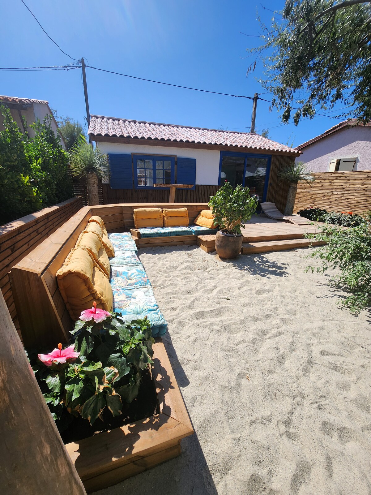 Perfect situat în inima orașului Palavas, la câțiva pași de plajă și magazine, cu o priveliște minunată a Canalului și a bărcilor. Casa este o etichetă inteligentă de confort și farmec, cu un living luminos cu bucătărie din SUA, care se deschide spre terasă, 4 dormitoare, 2 băi cu duș, 2 toaletă, aer condiționat, terasă frumoasă cu grădină liniștită cu vegetație. Centrul vechi, magazine și divertisment, 5 minute de mers pe jos, plaje frumoase 10 minute. Ai uitat mașina în timpul sărbătorilor !