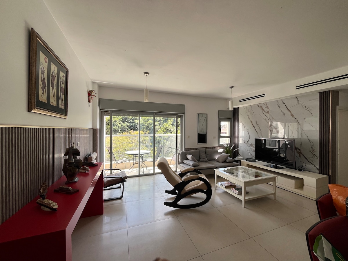 Apartament liniștit, elegant, cu grădină 3BR, chiar lângă strada Ahuza din centrul orașului Ra'anana, lângă Herzliya și Kfar Saba. Complet renovat, cu grădină privată, jacuzzi, bucătărie Kosher și Shabbat-friendly (nu este opțională), configurație de lucru de la distanță, Wi-Fi rapid, aer condiționat, mașină de spălat/uscător, Smart TV. Locuri de dormit 6 + pentru bebeluși. Include o cameră sigură (ממ”ד). Parcare privată gratuită și check-in independent. Mergi pe jos până la Parcul Ra'anana, cafenele, magazine și sinagogi. Ideal pentru familii, șederi de lungă durată sau călători de afaceri — un refugiu liniștit și de lux.