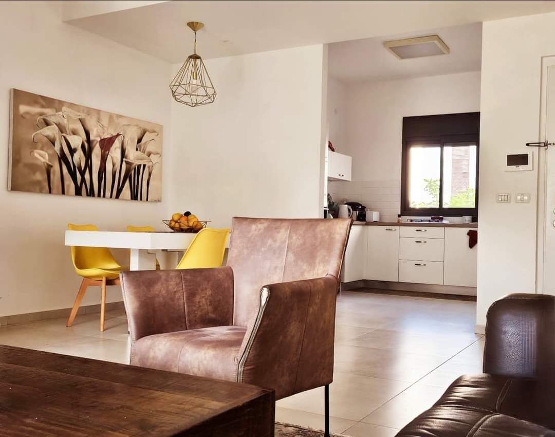 Design recent - apartament cu 3 paturi/2 băi! La câțiva pași de cafenele, parcuri, magazine și băcănie. Poate dormi confortabil 6 persoane. Mașină de spălat/uscător, TV prin cablu, WiFi, A/C. Bucătărie complet utilată. Scaune de balcon extrem de unice. Etaj 1; lift, parcare alocată. Aproape de transport (tren, autobuz, taxi). Acces ușor la Tel Aviv, Ierusalim, Haifa, via Route 6 din apropiere