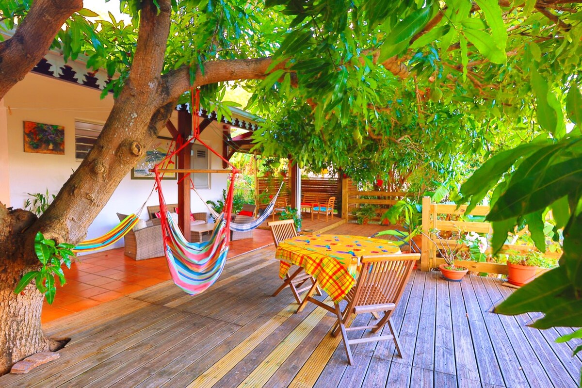 Découvrez notre petite cabane "Ti Palmié" située au milieu des arbres. Sa terrasse vous offrira une très belle vue panoramique : mer, Rocher du Diamant & Morne Larcher. La plage du Diamant, la plus grande de l'île, est à 200m ! Les restaurants, le marché et le centre ville avec ses commerces sont à proximité. Bonus : Aperitif, diner et petit-déjeuner d'accueil sont offerts et nous vous proposons des conseils de circuits pour optimiser votre séjour et profiter au mieux de notre belle île !