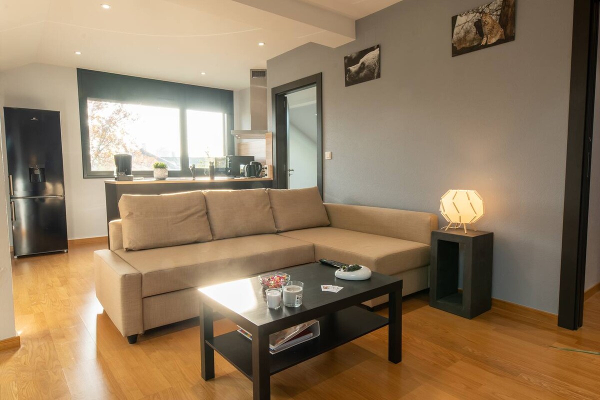 Apartament renovat și cu aer condiționat, cu intrare independentă, într-o casă cu acces la grădină/pădure, într-o zonă rezidențială frumoasă și liniștită din sudul Strasbourgului. Aproximativ 60 m2 împărțit între un living cu bucătărie, 1 dormitor cu un pat dublu, 1 dormitor cu 1 pat single (posibilitatea de a adăuga un al doilea pat single) și o baie/toaletă. Parcare privată. Acces la internet WiFi. Lenjerie de pat și prosoape disponibile la sosire. Apropierea de dotări, autobuz, autostrăzi.