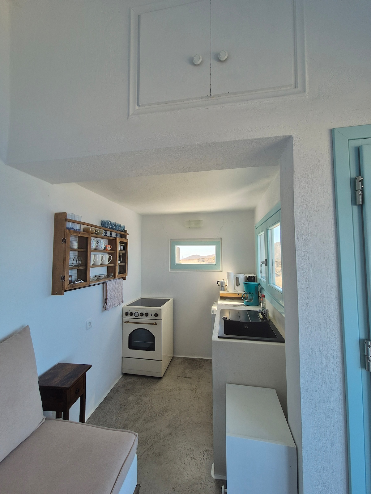 Un spațiu foarte confortabil și minunat pentru a-ți lua vacanțele. Perfect pentru 2 persoane. Ne descurcăm împreună cu stilul nostru cicladic și sentimentul că te vei simți ca acasă! Poți lua micul dejun cu persoana iubită pe balconul nostru perfect, cu vedere fantastică la ocean. Poți găti ceva de mâncare sau poți face o plimbare în portul nostru situat la numai 5 minute distanță pentru a gusta orice dorești.