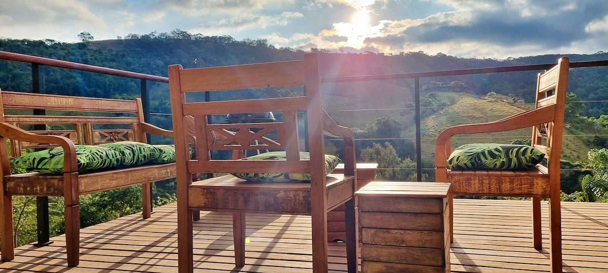 Casă din lemn în munții Petrópolis, perfectă pentru cuplurile care doresc să se relaxeze și să trăiască momente deosebite în mijlocul naturii. Înconjurată de verdeața și liniștea munților, casa oferă o terasă cu hamac și o cadă cu hidromasaj relaxantă. Trezește-te în sunetul cântecului păsărilor, respiră aerul proaspăt de munte și încheie ziua admirând un apus de soare de neuitat. Un refugiu confortabil pentru zile liniștite, vin pe terasă și momente de neuitat pentru două persoane.