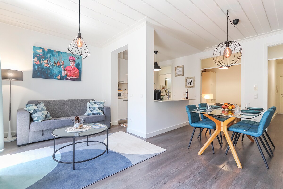 În inima Lisabonei, bucură-te de o locuință spațioasă, elegantă și centrală. La 2 străzi de emblematica piață Time Out, apartamentul de aproximativ 50m2 este compus din: - Living / sufragerie ( 1 canapea extensibilă pentru 2 persoane) - Bucătărie complet utilată în spațiu deschis - 1 baie - duș - 1 dormitor cu pat dublu ( 160x200) - TV Smart/ Netflix -AC - Wi-Fi / FIBRĂ OPTICĂ Maximum: 4 adulți Animale de companie Nu este permis APARTAMENT PENTRU NEFUMĂTORI Apartament decorat cu grijă și luminos. Coup de Coeur asigurat!