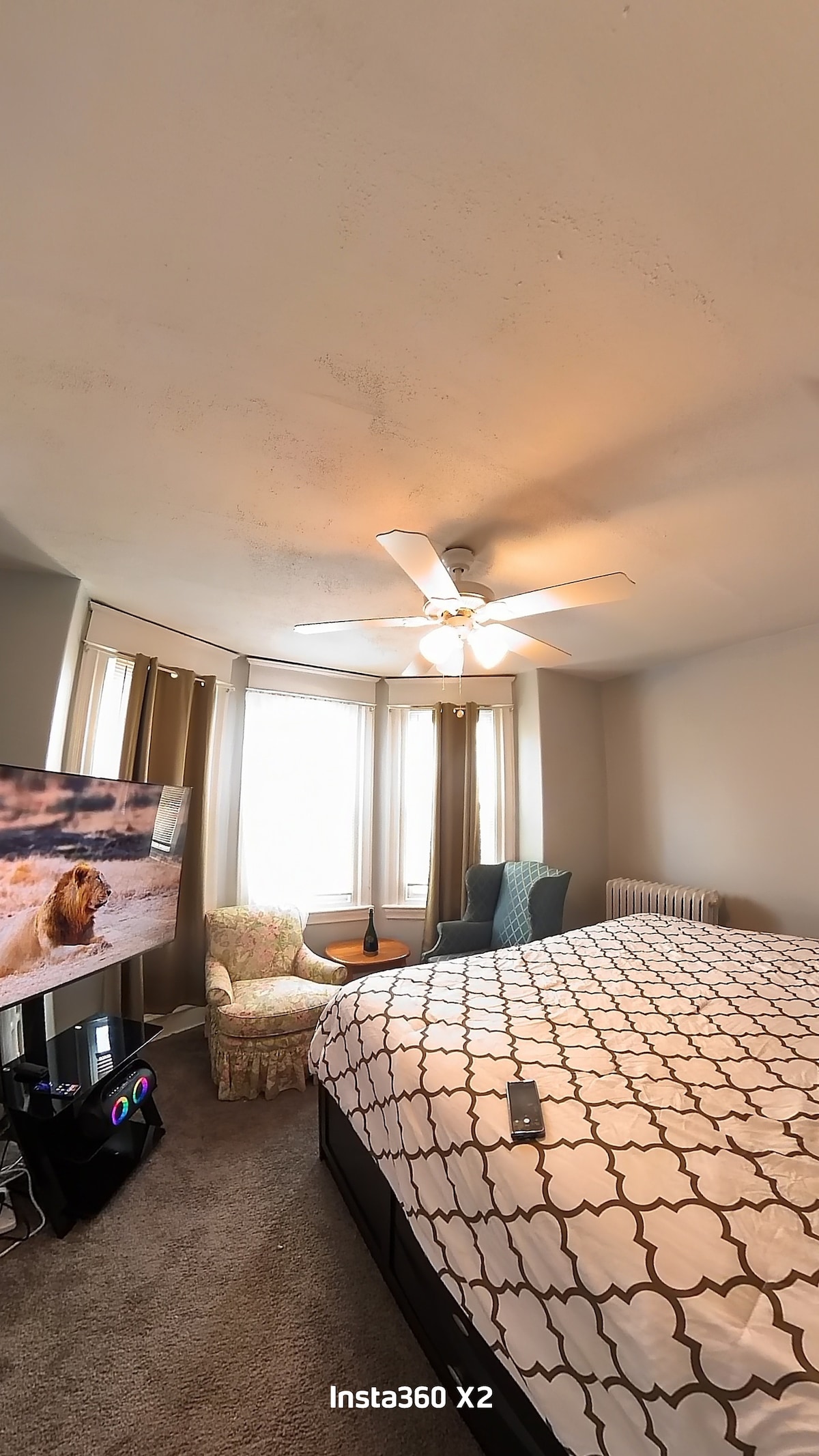 Un studio recent renovat la primul etaj al unei case mari în parc, cu baie proprie completă și intrare privată. Unitatea este închisă pentru restul casei, ceea ce o face liniștită și privată. - Fotoliu din piele cu otoman - Pat matrimonial ultra confortabil - Stație de lucru cu scaun ergonomic - Noul televizor inteligent LG de 65”cu Wi-Fi, Netflix gratuit - Intră în dulap cu 4 sertare - Fereastră imensă orientată spre parc - Spălătorie comună cu mașină de spălat și uscător automat de rufe LG noi - Încărcător de mașini electrice - Draperii de camuflare