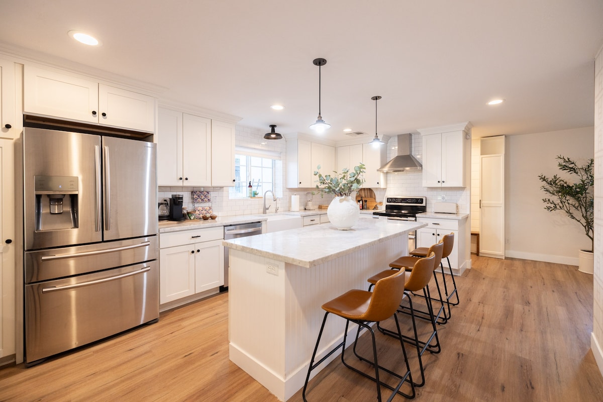 Această locuință a fost renovată de un designer profesionist (@designxwoods) și prezintă detalii unice și finisaje inspirate la fiecare colț! Bucură-te de lumina naturală în spațiul de locuit aerisit și deschis înfășurat în cărămidă albă și chiar aventurează-te pe scară până la mansardă pentru un moment de meditație. De la mobilierul retro și podelele din lemn de stejar până la băile de tip spa, locuința este caldă și fermecătoare și plină de dotări pentru a-ți face șederea confortabilă. Este perfect pentru grupuri mai mari sau familii care doresc o ședere confortabilă în apropierea celor mai bune restaurante și magazine pe care Phoenix le oferă. Terasa pavată din cărămidă oferă o opțiune excelentă de luat masa al fresco, cu frumoasele apusuri de soare din Arizona. Declinarea responsabilității: pentru siguranța proprietății noastre și a oaspeților noștri, pe veranda din față a fost instalată o cameră de supraveghere. Oaspeții au acces la întreaga locuință, inclusiv la terasa din spate. TE RUGĂM SĂ REȚII: mansarda este accesată printr-o scară de oțel care este fixată pe perete. Solicităm oaspeților să folosească scara cu atenție și pe riscul lor. Suntem întotdeauna disponibili telefonic sau prin intermediul aplicației. Casa se află în cartierul istoric Coronado, o comunitate rezidențială liniștită de familii tinere și artiști. Mai multe restaurante și cafenele sunt la câțiva pași. Centrul orașului Phoenix se află la 5 minute cu mașina. Oaspeții sunt bineveniți să parcheze pe aleea cu pietriș, două mașini se pot potrivi în tandem. Proprietatea are un maxim de două mașini. TE RUGĂM SĂ REȚII: fotografiile anunțului au fost făcute înainte de instalarea tratamentelor pentru ferestre. Dormitorul principal are în prezent un panou de draperie. Dormitoarele pentru oaspeți au jaluzele opace, iar ferestrele livingului au jaluzele de confidențialitate.
