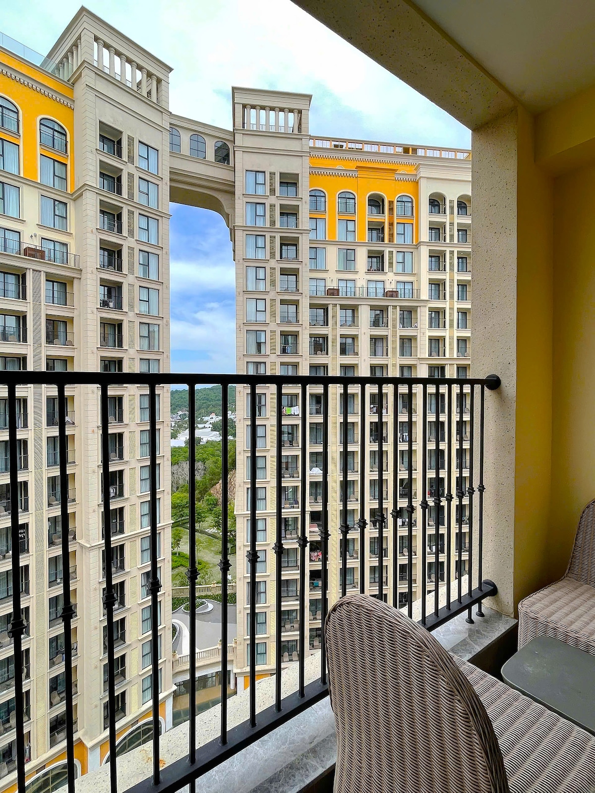 Apartament cu 1 dormitor, 1 living cu bucătărie în centrul orașului Sunset, An Thoi, Phu Quoc - vedere la munte și balcon mare. ✨ Artificii în fiecare seară, pot fi văzute la piscină sau pe stradă, la doar câteva minute de mers pe jos. ✨La numai 300 m de plajă - perfect pentru plajă, relaxare și explorarea locurilor celebre, cum ar fi Podul Kiss, stația de telecabină Hon Thom, supermarketuri, restaurante, cafenele, piețe de noapte, canoe pe mare. Facilități gratuite ✨incluse, cum ar fi: sală de gimnastică, piscină infinită cu vedere la mare, cameră de joacă pentru copii.