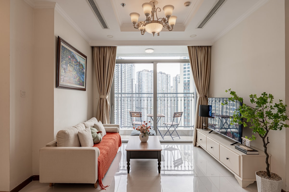 Apartament elegant mobilat cu 1 dormitor, cu vedere clară la centrul orașului (Districtul 1) și zona înconjurătoare și două televizoare inteligente. Complet echipat, cu o gamă largă de dotări (a se vedea fotografiile) de neegalat de alte apartamente din oraș, servicii rapide pentru clienți până târziu. Cazarea la noi este cea mai bună alegere pentru oaspeții care apreciază fiabilitatea și confortul. Situat în Parcul Central Vinhomes, o zonă de lux cu restaurante, cafenele, un mall și faimosul turn Landmark 81. La doar 10-15 minute de centrul orașului.