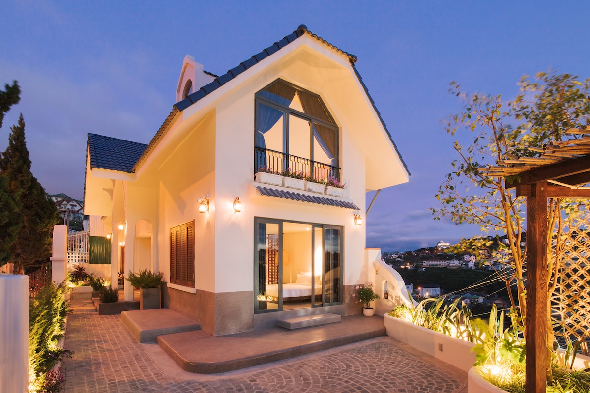 Un bungalou privat complet mobilat, înconjurat de o grădină verde. Premisa se află în inima orașului, dar oferă totuși o priveliște uimitoare a apusului de soare. Ít se închide la tot, perfect pentru a-ți planifica vizita. Sau, dacă vrei doar să stai în casă și să te relaxezi, să respiri aerul curat, cu siguranță te vei bucura de șederea pe verandă, savurând o ceașcă de ceai și lăsând frumosul peisaj apus de soare să se scufunde. Localizează într-un spațiu cu acces facil, fără scări, la câțiva pași de Crazy House, piață, magazine,restaurante...