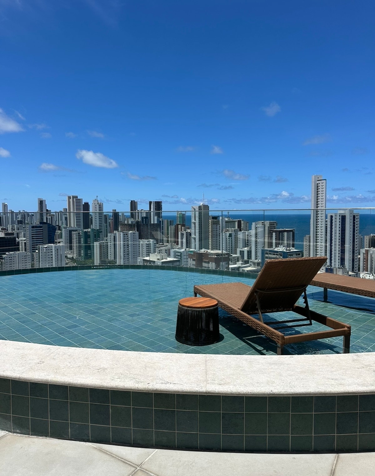 Excellent flat apartment with 35m2 on the seafront of Piedade. Condominium with 24-hour concierge, garage, shared laundry, gym and infinity pool with incredible views on the rooftop. Our space is super cozy and has everything to ensure your comfort and well-being. Surroundings full of conveniences within walking distance. There are restaurants, snack bars, pharmacies, supermarkets and various services, including a shopping mall.