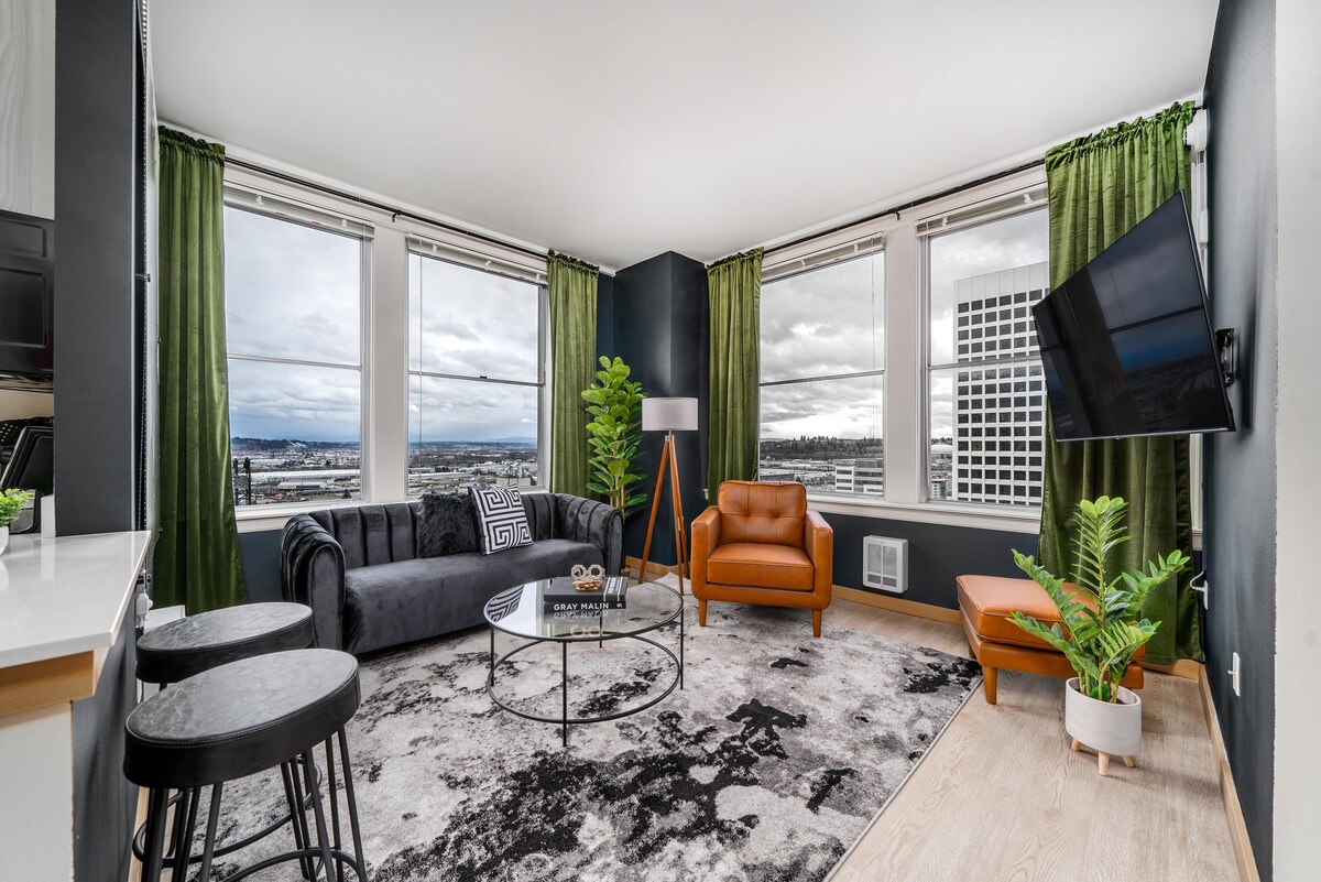 Relaxează-te în acest apartament uimitor din centrul orașului Tacoma. Spațiul a fost proiectat cu drag, cu stil sofisticat, confort și funcționalitate pentru un aspect luxos, dar fermecător. Bucură-te de priveliștea Muntelui Rainier și a căii navigabile Thea Foss atunci când te trezești din pat, precum și atunci când te instalezi pe canapea. Locuința este situată în inima centrului orașului - aproape de restaurante și baruri, autostradă, spitale și universități. Indiferent dacă călătorești în interes de serviciu sau în aventură, abia așteptăm să te servim!