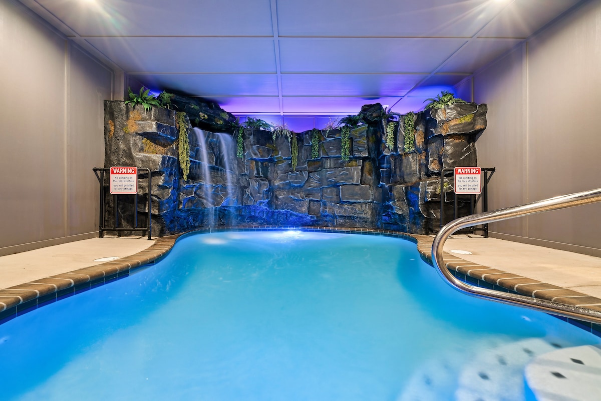 Experimentează luxul de neegalat la Windows to the Mountains, o minune modernă amplasată în Gatlinburg, cu vedere uimitoare la Mt. Leconte. Chaletul are o terasă pe acoperiș cu o piscină, cinematograf și facilități de exterior rafinate. Bucură-te de o bucătărie complet utilată, un living confortabil cu un șemineu cu vapori și o suită principală cu o baie tip spa. Cu un bar de cafea, mese de joc și o saună, Windows to the Mountains oferă un refugiu exclusivist pentru oaspeții exigenți care caută o evadare somptuoasă.