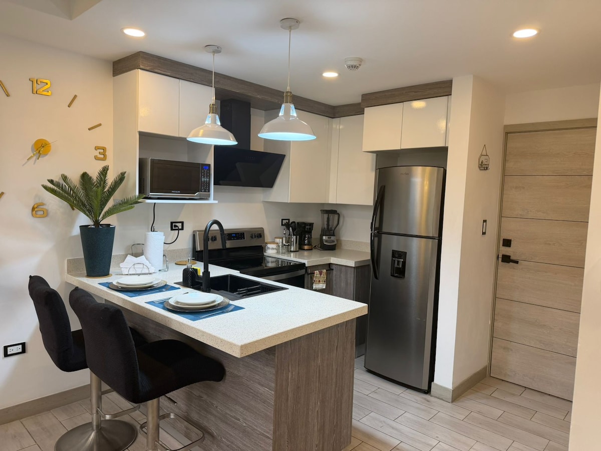 Bienvenido a nuestro moderno apartamento en el onceavo piso de "Residenza, Río de Piedras" donde disfrutarás de una vista espectacular de la ciudad. Completamente nuevo y diseñado con atención a cada detalle para ofrecerte una estancia inolvidable. Totalmente equipado, encontrarás todo lo que necesitas para una experiencia cómoda y relajante, sin necesidad de salir. Ya sea para una escapada de negocios o de placer, este apartamento te ofrece el refugio perfecto en el corazón de la ciudad.