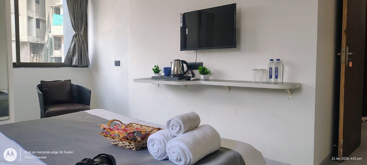Welcome to 24 Baner Rooms 🧺 Amenities • Air-conditioning • Fast Wi-Fi • LED TV with • Private bathroom with hot water • Clean towels & toiletries • Daily housekeeping • 24x7 security & CCTV • Elevator access • Power backup • Parking 📍 Location • 🏬 Balewadi High Street – 5 mins • 💻 Hinjewadi IT Park – 10–15 mins • 🏢 Aundh & Pune University – 10 mins • ✈️ Pune A