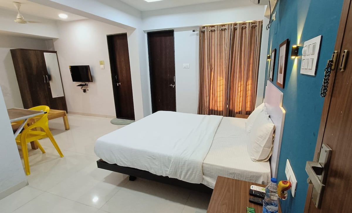 Experience the ideal blend of comfort and productivity at Corporate Retreat. Situated within our boutique hotel building that also houses 2BHK serviced apartments, this room is designed for working professionals, digital nomads, and business guests. It features reliable WiFi, a comfortable workspace, and an inviting atmosphere for both rest and focus. Perfect for short business trips or longer corporate stays, close to major offices and transport hubs.