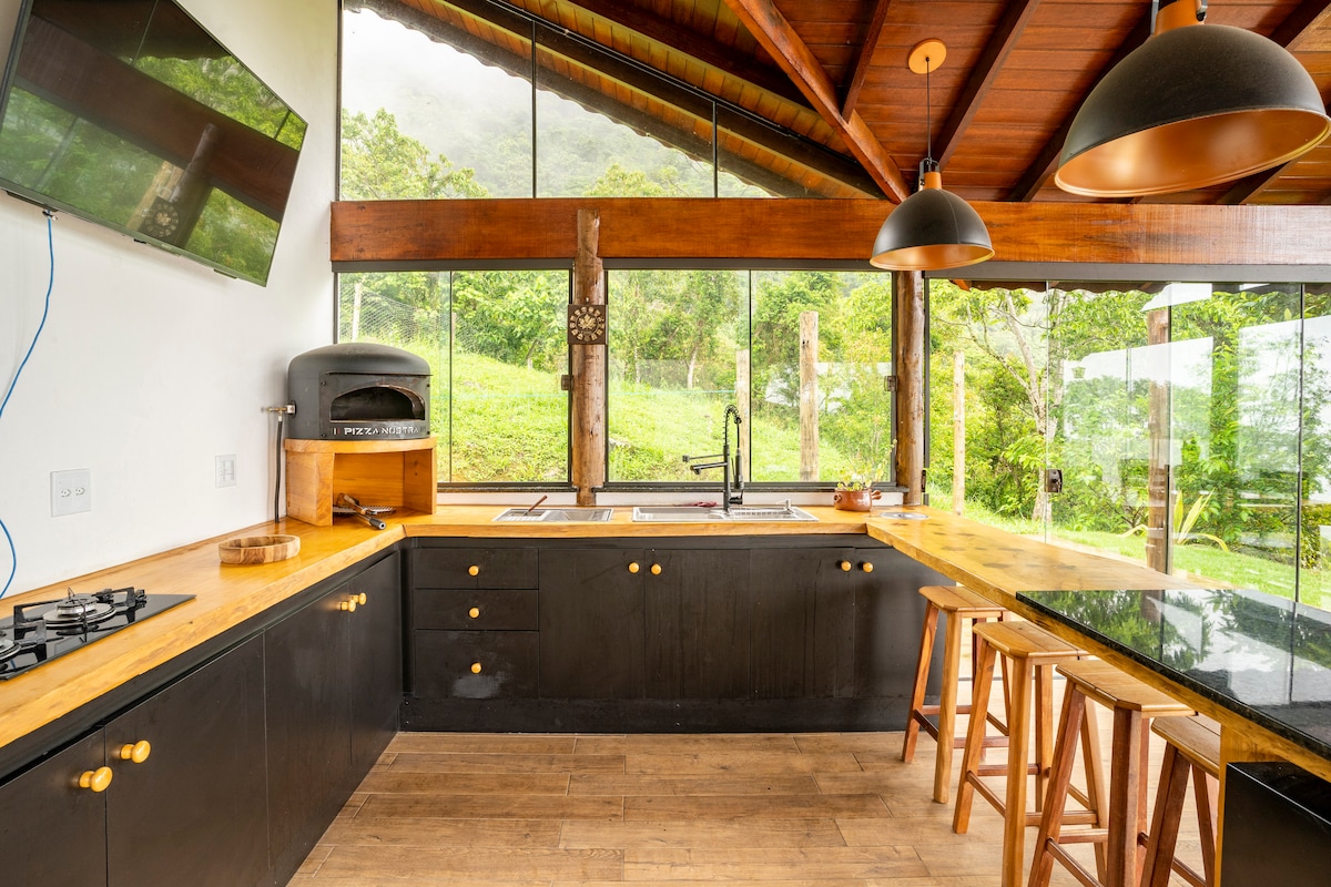 Temos 2 gatinhos, Lord Juba e Shiva que são moradores da casa e são os anfitriões mais fofos e simpáticos do AirBnb. A casa é aconchegante, tem decoração rústica, uma cozinha com fogão a lenha super equipada para quem gosta de cozinhar. Tem muita natureza aos redores, arvores, horta e um gramado delicioso pra curtir um final de tarde. A vista é de tirar o fôlego e a integração com a natureza acontece em todos os cômodos, através das janelas envidraçadas.