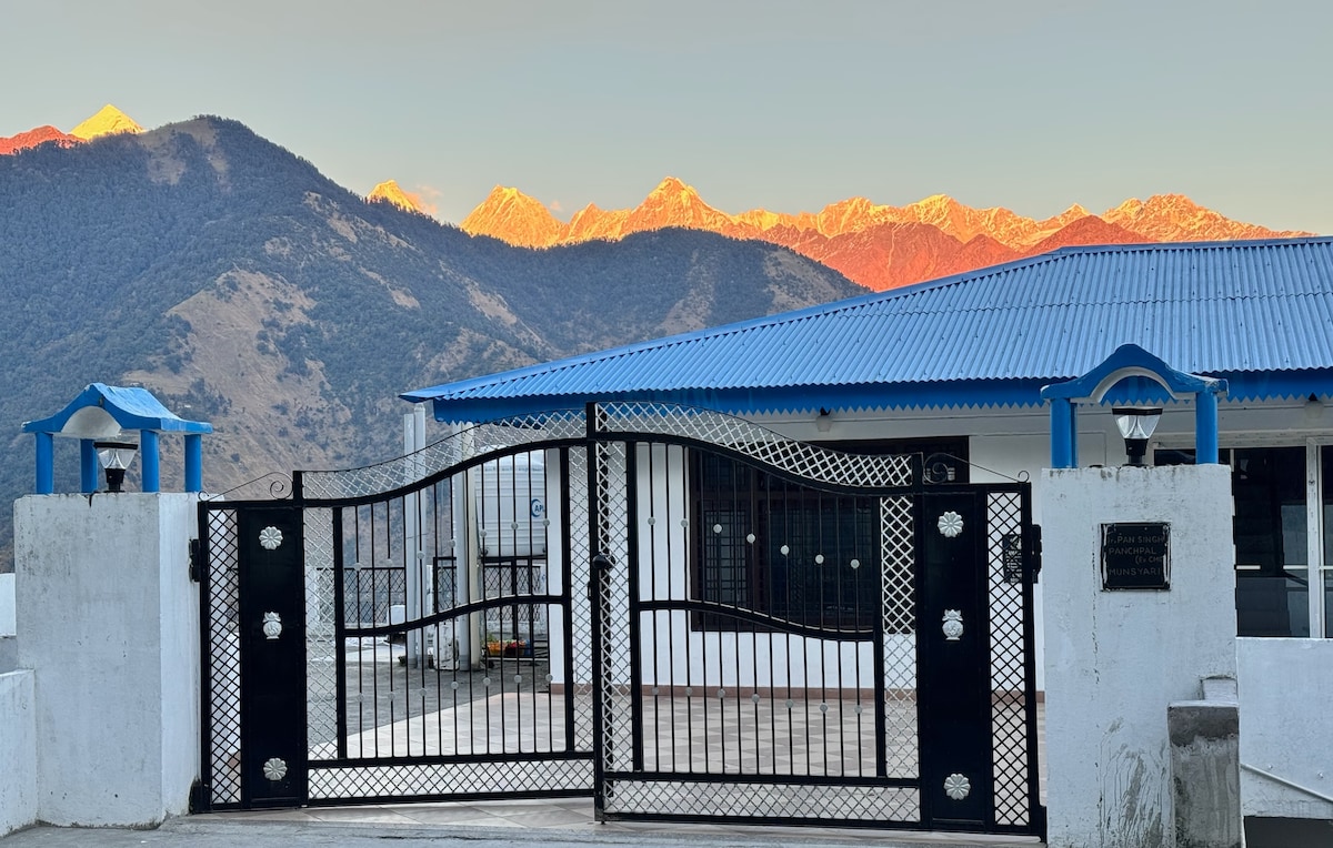 Bine ai venit în casa noastră de oaspeți liniștită, cu priveliști uimitoare din Himalaya! Relaxează-te în grădina noastră luxuriantă, adună-te în jurul focului de tabără sau campează sub stele. Bucură-te de servicii convenabile de spălătorie și de rafting pe râu în apropiere. Explorează fără probleme cu pachetele noastre turistice incluzive. Găsește confortul, aventura și liniștea aici.