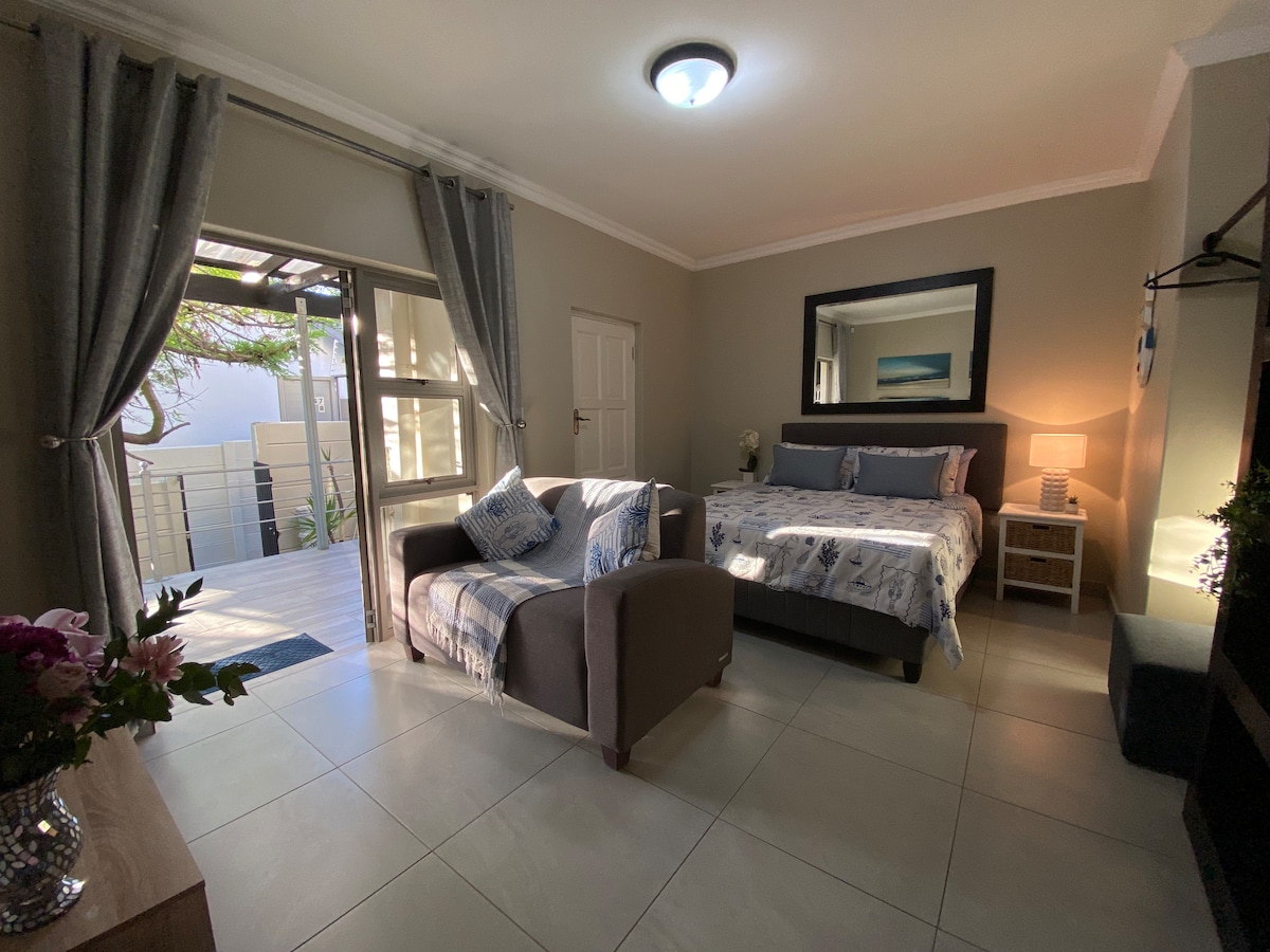 Acest apartament complet mobilat cu 1 dormitor oferă living confortabil, internet wireless, DSTV și priveliști minunate, în special de pe puntea superioară. Apartamentul are o intrare separată și oferă garaj pentru o mașină de dimensiuni mici și medii. Apartamentul este la 5 minute de mers pe jos de populara plajă Blouberg și de un restaurant local. Aproape de Eden on the Bay, care se mândrește cu o altă plajă, care este preferată de numeroasele kite surferi, magazine, restaurante și puburi. Suntem, de asemenea, pe ruta mea de autobuz citi.