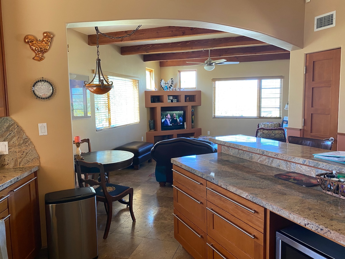 The Landing at Sky Ranch Retreat is a rare stay on a private airpark in Carefree, AZ. Enjoy aircraft views, sunrise coffee, desert sunsets, wildlife, and stargazing. Pet-friendly with an indoor fireplace, patios, gym equipment, and luxury bamboo sheets. Ideal for longer stays, remote work, or a quiet reset. Minutes to hiking, golf, spas, and Cave Creek nightlife with two private master suites.