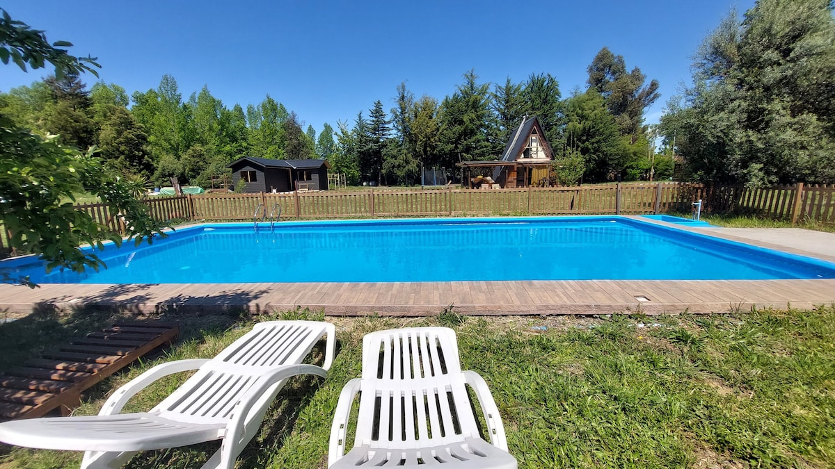 Deconectează-te de la rutină și bucură-te de un weekend cu partenerul sau familia în acest loc unic, cufundat în copaci de hualles, maitenes și alune, care se amestecă cu grădini și spații pentru liniște. Pentru sezonul de vară, o piscină cu margine infinită și cascadă vulcanică stâncoasă, specială pentru fotografii cu efect. Situat strategic între Rio Chillán spre nord și Rio Diguillín spre sud, cele două fiind la aproximativ 10 minute distanță de zonele de aprovizionare (500m)