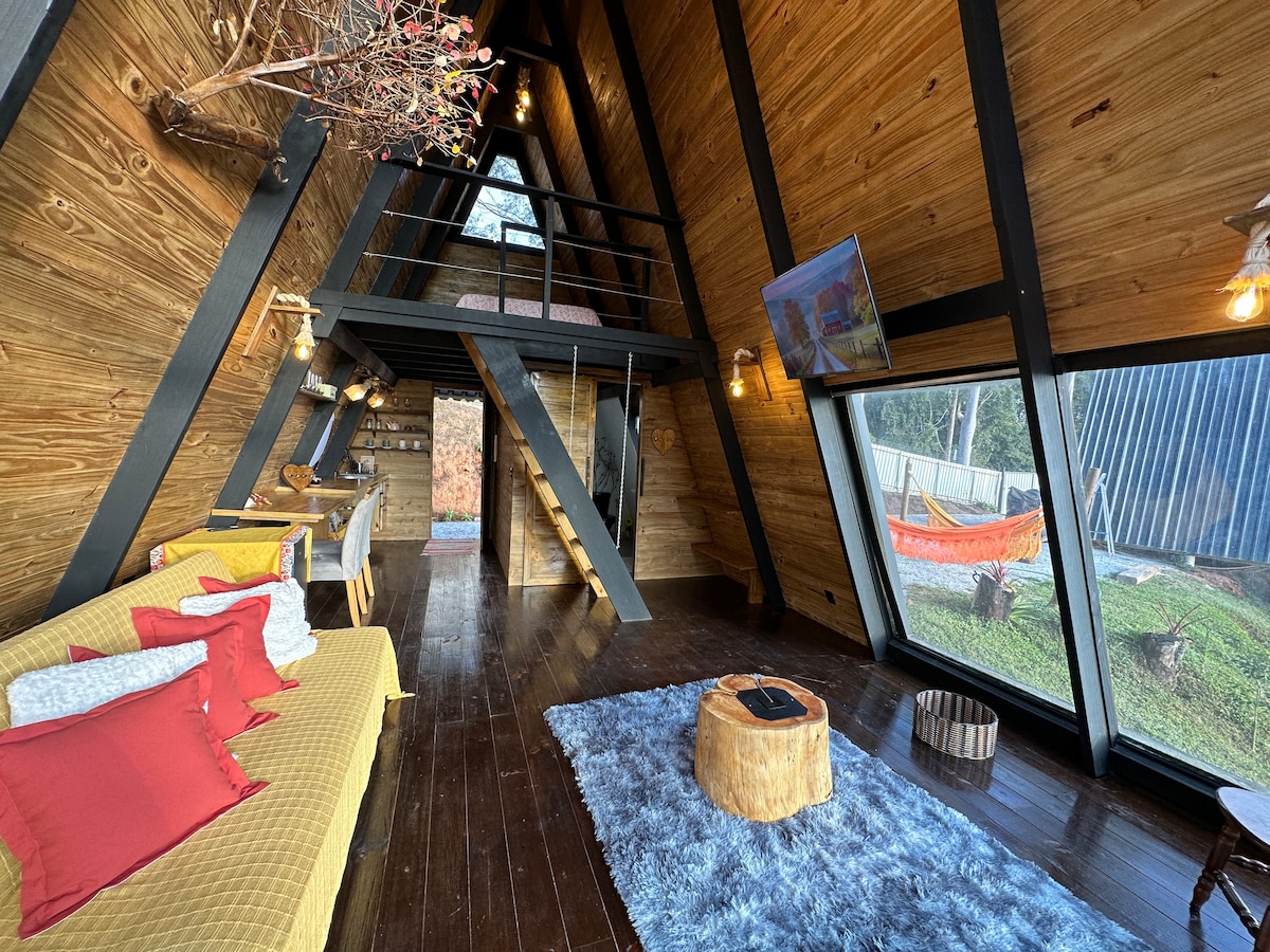 O Village dos Alpes tem uma vista única e impactante, na entrada somos recebidos por um caminho de eucaliptos que exalam um aroma refrescante junto ao ar puríssimo que temos na região. A cabana conta com uma sala agradável, pé direito alto e muito vidro, varanda com vista panorâmica para as montanhas, onde vemos o nascer e pôr do sol, banheiro social, copa e quarto no mezanino. Viva essa experiência conosco!