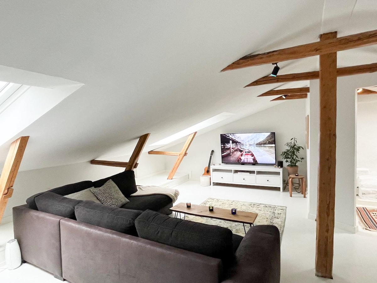 Simplifică lucrurile în acest loc liniștit, situat central. Apartamentul este situat lângă centrele comerciale, convenabil de aproape de toate facilitățile. Este ușor să ajungi acolo și să pleci cu autobuzul, trenul și mașina. Loc de parcare privat lângă ușă. Apartamentul se află la ultimul etaj al unei case cu lift, pe o parte liniștită a curții și are un balcon spațios. În plus față de Wi-Fi, există un Chromecast și un televizor mare 4K. Poate fi împărțită în două paturi, iar canapeaua extensibilă este 140.