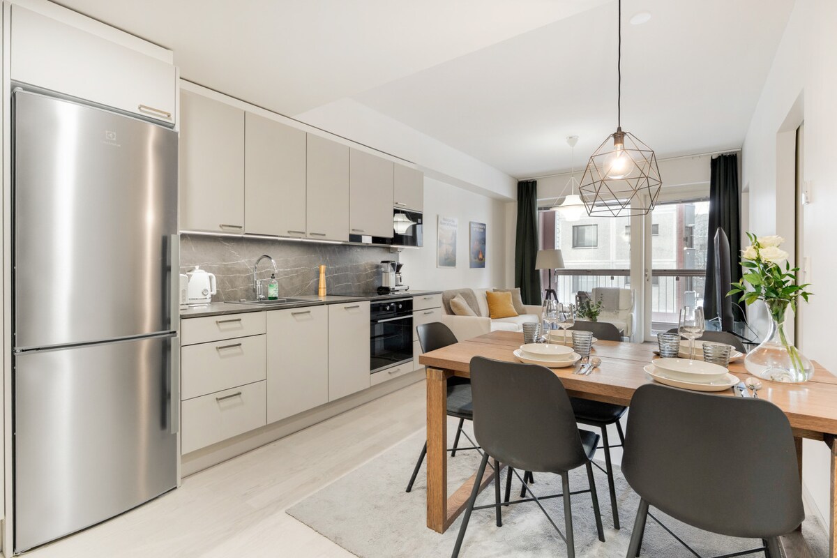 Bine ai venit la una dintre cele mai frumoase clădiri de apartamente din Tampere. Paturile de înaltă calitate vă așteaptă în apartament, cu cearșafuri proaspete și lenjerie de pat gata. Zona are activități fermecătoare în aer liber chiar pe malul lacului Pyhäjärvi. La magazinul universal 200 m. 400 m până la stația de autobuz, care te duce în centru în 15 minute. Mergi pe jos până la Messukeskus 15 minute Parcare accesibilă chiar în parcarea din fața ușii din față cu aplicația de parcare electronică.