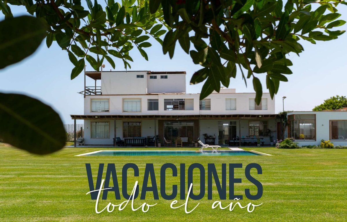 Casita Bonita, la mejor opción para disfrutar del clima de Ica, dentro del Condominio Playa del Carmen. Déjate convencer por nuestras reseñas! Piscina privada, jardín muy amplio, cocina, parrilla y fogata completamente equipadas, toallas de playa, sillas, reposeras, pelotas, raquetas, juegos de mesa, TV Smart, WiFi de alta velocidad y mucho más. Mascotas bienvenidas y cerco completo al rededor de la propiedad para que se sientan libres. Reservas de larga duración incluyen limpieza semanal.