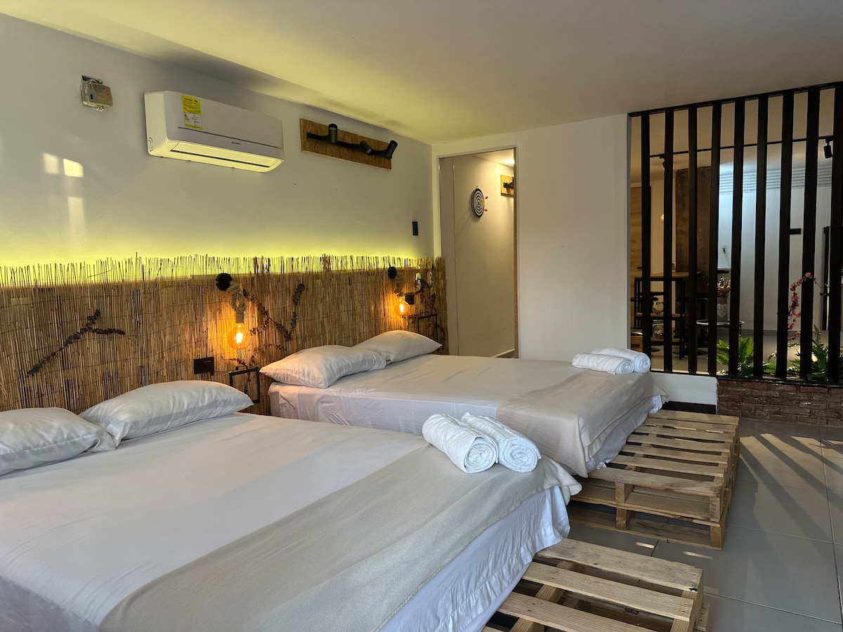 Escápate a una villa con piscina privada, un refugio rodeado de naturaleza y confort. Vive una experiencia única en su ambiente tipo loft, con cama king size, baño con vistas al cielo y ducha al aire libre bajo las estrellas. Disfruta su cocina mediterránea, ideal para compartir momentos especiales. El patio con vegetación e iluminación cálida crea una atmósfera mágica para el descanso, a solo 25 min de Barranquilla.