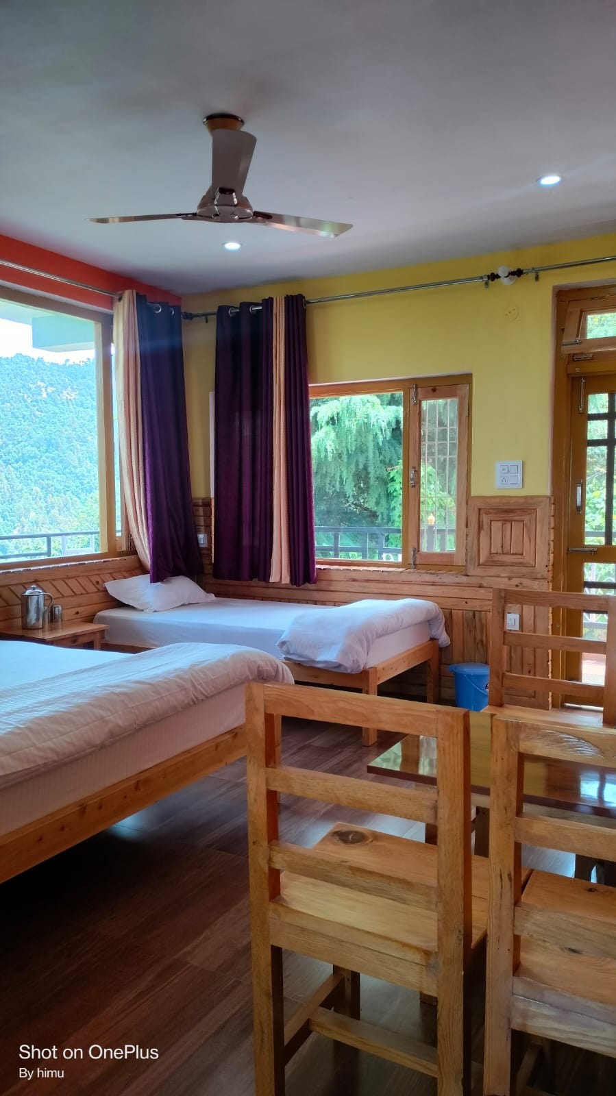 Bine ai venit în casa noastră de oaspeți liniștită, cu priveliști uimitoare din Himalaya! Relaxează-te în grădina noastră luxuriantă, adună-te în jurul focului de tabără sau campează sub stele. Bucură-te de servicii convenabile de spălătorie și de rafting pe râu în apropiere. Explorează fără probleme cu pachetele noastre turistice incluzive. Găsește confortul, aventura și liniștea aici.