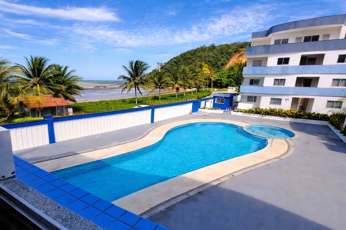 Apartamento Pé na Areia vista mar com piscina •