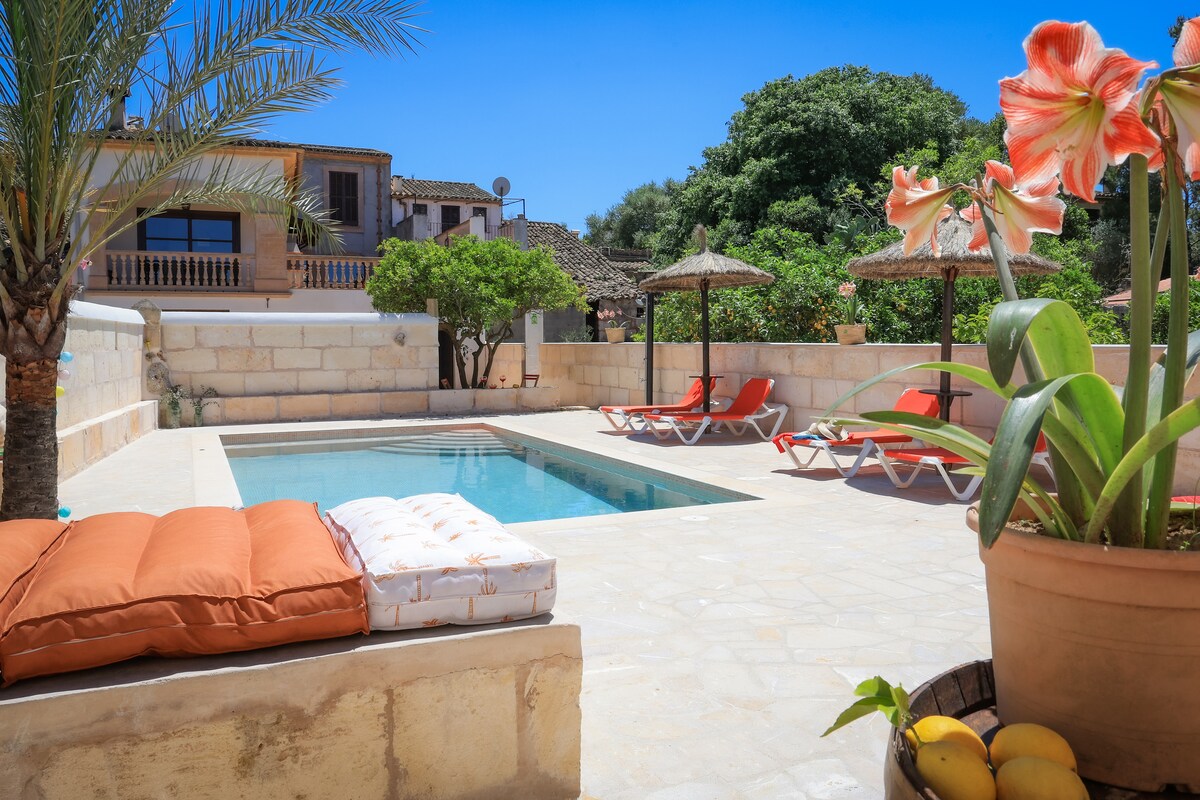 Can Merris es una casa de pueblo construida en 1895 que conserva su carácter y personalidad. Recién reformada mezcla tradición con modernidad y comodidad. Ideal para invierno y verano, tiene chimenea, calefacción y aire acondicionado. Con un patio encantador con iluminación indirecta y guirnalda de intensidad regulable. Magica piscina tipo alberca para refrescarte en los días de sol. La ubicación es perfecta para ciclistas, amantes del vino y a tan sólo 30min de Palma y las mejores playas.