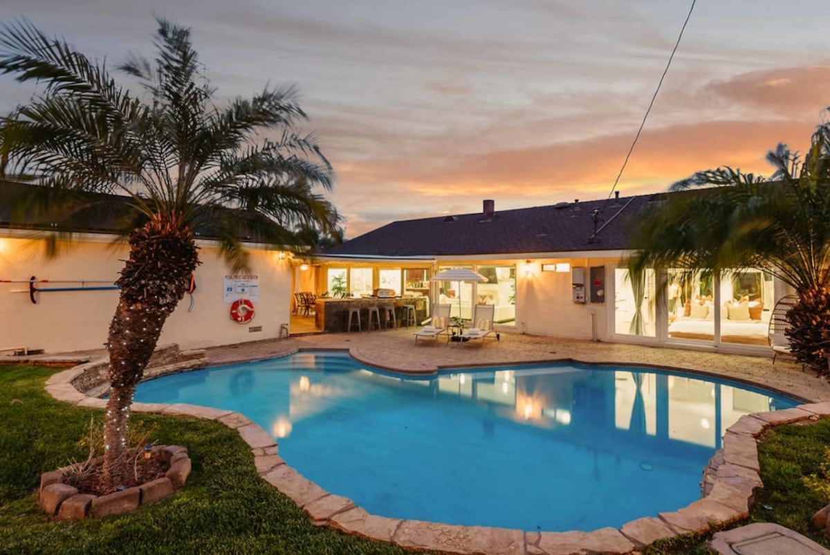 Găzduită de ușa galbenă! Această locuință spațioasă concept deschisă este situată în însoritul Fullerton, CA. Pregătește mesele împreună în bucătăria noastră mare, complet aprovizionată, care curge direct în sufragerie și living sau grătar în frumoasa curte din spate, cu o piscină și spa remodelate. Piscina și spa-ul sunt disponibile pe tot parcursul anului pentru a face o baie sau a te relaxa în spa. Jocuri de exterior și de interior de familie și prieteni se pot bucura!