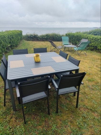 Maison avec magnifique vue mer et accès direct à la plage. La maison se compose d’un salon séjour ouvert sur la cuisine, une petite salle d’eau, 3 chambres à l’étage, dont deux avec lit double et une avec lit simple. Une véranda avec barbecue complète l’ensemble. Jouets de mes enfants mis à disposition des jeunes locataires. Ménage à la charge des voyageurs (45€). Serviettes et draps non fournis. 1 place de parking.