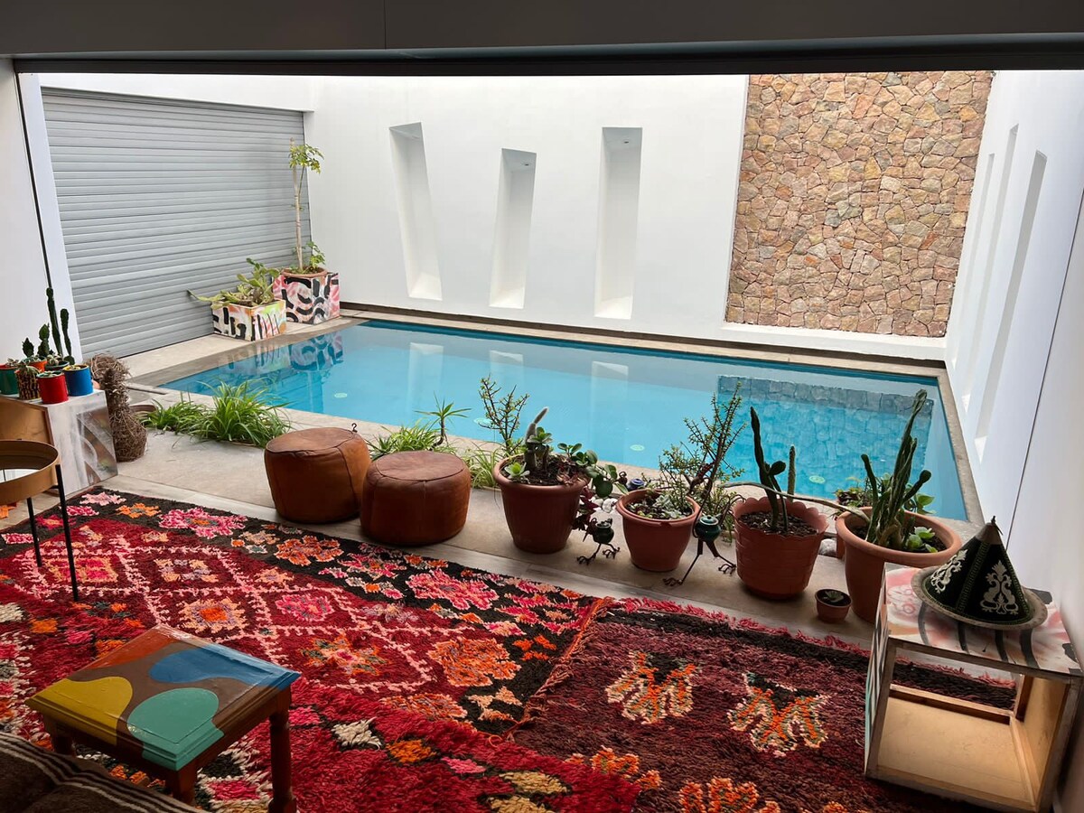 Enjoy a stylish and modern 2-bedroom apartment with a relaxing pool in the calm neighborhood of Wifaq. With three terraces, a spacious living area, and a big TV for Netflix & chill, this home is designed for comfort. The fully equipped kitchen has everything you need to cook like a chef. Just 10 minutes from Hay Riad, Rabat’s most prestigious district with cafés and boutiques, and 5 minutes from Harhoura’s beaches , this well-located stay offers the perfect blend of comfort and accessibility!