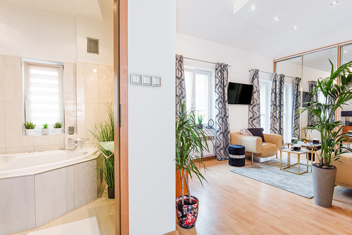 Mansarda noastră imaculată și spațioasă se află în inima centrului vechi al Cracoviei, chiar în vârful unei case tradiționale din secolul al XV-lea. Este un apartament studio elegant oferind un spațiu mezanin orbitor. Situat în centrul orașului aglomerat, o dată în apartament vei fi în pace, cu fața spre o curte liniștită, cu vedere la vârfurile copacilor și clopotele bisericii sunând în depărtare. Timpul petrecut în acest loc minunat din Cracovia va crea amintiri care vor străluci în anii următori.