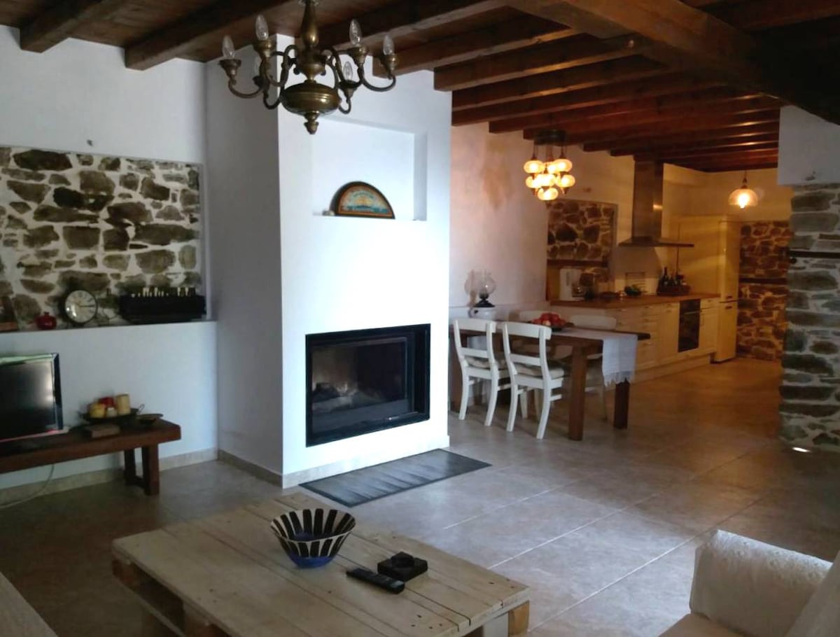 O casă de piatră de la țară îți oferă posibilitatea de intimitate și relaxare. Înconjurat de măslini și de o priveliște uluitoare a Mării Egee. Petit Stonehouse este la cinci minute de mers cu mașina de plaja Mulopotanos și la cinci minute de satul Tsagarada. De asemenea, este disponibil un răcitor de aer condiționat - șemineu-Tv - apă caldă