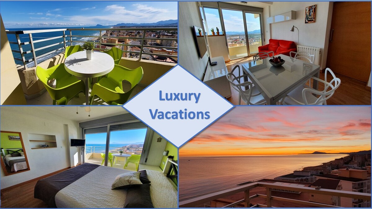 Magnific apartament cu trei dormitoare și două băi, pe malul mării, cu care se confruntă la mare și lângă dune. Este un al patrulea etaj cu lift, parcare proprie, piscină și grădini comunitare. Mobilier modern de calitate, cu toate facilitățile și complet echipat, aer condiționat, mașină de spălat rufe, uscător, mașină de spălat vase, aragaz și plită ceramică, cuptor cu microunde, filtru de cafea etc. WIFI 600MB. Poți auzi valurile din sufragerie. Ne pare rău că nu putem găzdui grupuri de tineri.
