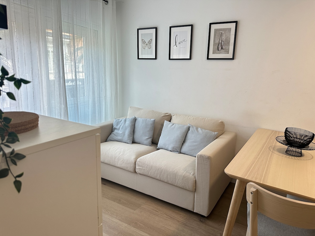 Apartament frumos situat într-o zonă rezidențială liniștită, lângă plajă. Apartamentul este plin de lumină și este echipat cu toate lucrurile de uz casnic necesare, mașină de spălat rufe, aer condiționat, aer condiționat și Wi-Fi. Este la doar 7 minute de mers pe jos de gară și lângă stația de autobuz, supermarket și câteva magazine foarte la îndemână. Are o terasă de 10m2, 2 dormitoare, 1 toaletă, 1 bucătărie, 1 cameră utilitară și 1 loc de parcare. Aceasta este situată într-o clădire cu trei etaje, la etajul al doilea. Nu există lift.
