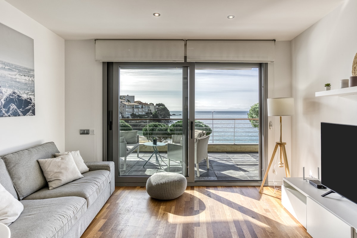 Apartament frumos, modern și luminos, este situat pe malul mării și îți oferă priveliști spectaculoase asupra Golfului Rosas și a promenadei sale de pe terasă. Este complet utilată (bucătărie și ustensile, încălzire / aer condiționat, fier de călcat, mașină de spălat rufe, lenjerie de pat și prosoape, WiFi ...) și are un spațiu de parcare privat.