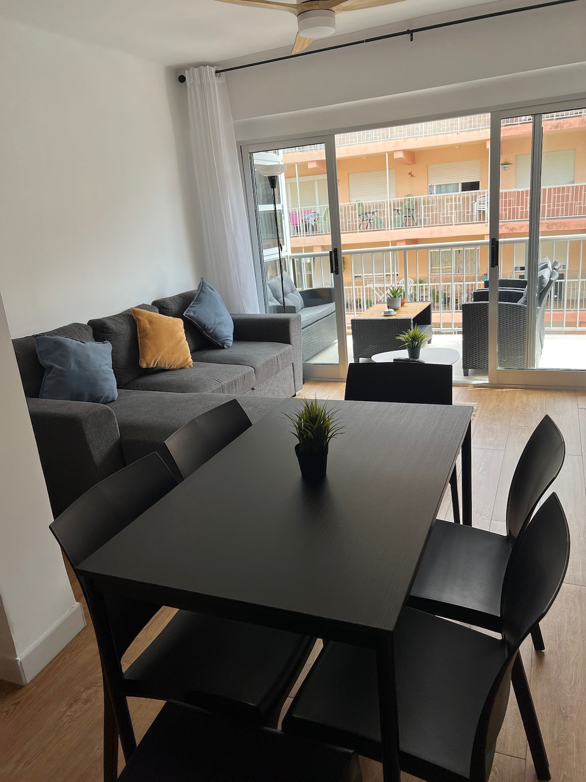 Bienvenidos a nuestro renovado apartamento 🌴 La Terraza de Palmeres 🌴 con su amplia terraza para que disfrutes en sus dos zonas, comedor y salón exterior. A tan solo 100 metros del mar, podrás pasear por la fina arena de la playa durante todo el año, gracias al buen clima de las costas valencianas. A tu llegada encontrarás agua y refrescos en la nevera, así como café junto a la cafetera, para hacer más agradable la bienvenida al apartamento. Haz tu reserva y prepárate para disfrutar!