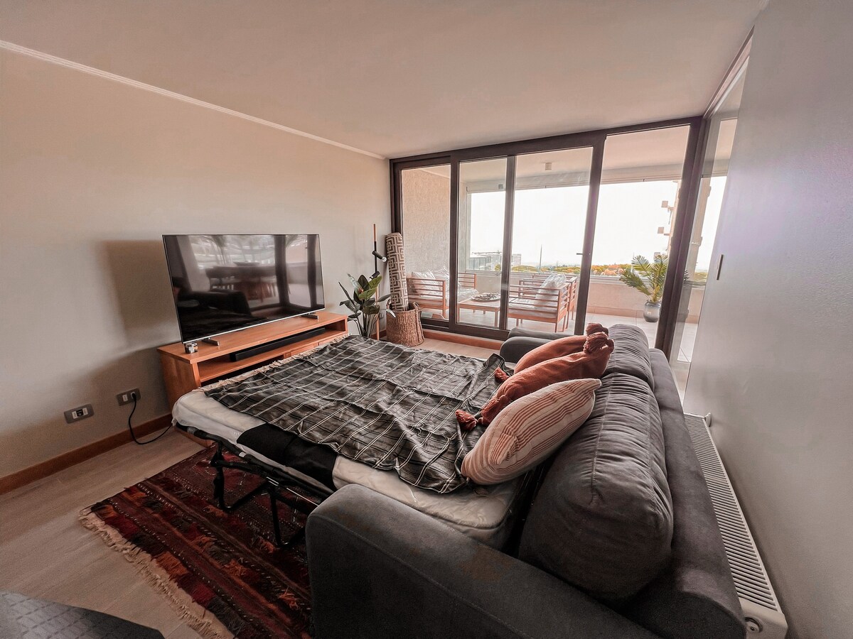 5* Viña/Valparaiso: OFERTĂ SUPER DE VARĂ; ESCAPADĂ IDEALĂ, VEDERE EXCELENTĂ, ECHIPAT, PARCARE, SALĂ DE SPORT, TERASĂ PANORAMICĂ, SPĂLĂTORIE. Rezervare prealabilă pentru piscină în aer liber de vară. Cel mai bun raport preț/calitate! Frumos, confortabil, confortabil. Te VEI SIMȚI CA ACASĂ! Mai mult decât cazare, este o panoramă să fii acolo: luminos, într-un cartier liniștit și rezidențial. Transport la 1/2 stradă distanță, fier de călcat, smartTV, uscător de păr, paturi făcute, difuzor bluetooth, storcător, cuptoare, filtru de cafea, sare, zahăr, ceai, cafea și multe altele.