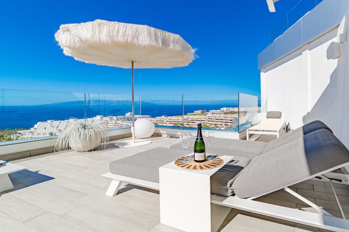 Vilă de lux însorită cu piscină încălzită și terasă orientată spre sud-vest, care oferă apusuri de soare zilnice peste La Gomera, munți și Muntele Teide. Un design Leonardo Omar cu piese de designer selecționate și materiale naturale — lemn, lenjerie, bumbac. Fiecare dormitor are baie proprie și terasă. Include dressing cu mașină de spălat/uscător. Un amestec perfect de eleganță, confort și priveliști uluitoare.