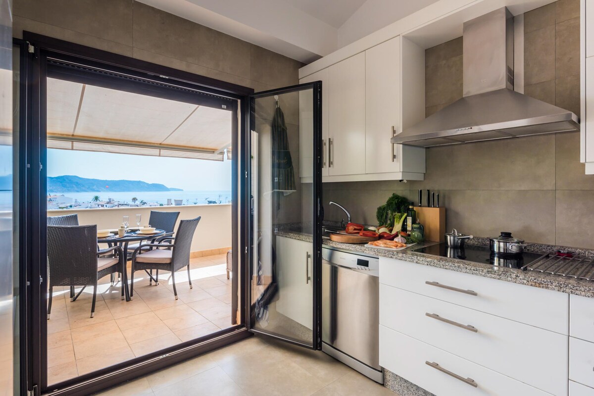 Apartament cu 1 dormitor cu o terasă enormă cu vedere la mare. Acesta este echipat cu tot ce ai putea avea nevoie pentru a face sa te simti confortabil. Bucătărie nou-nouță instalată în ianuarie 2022, cu mașină de spălat vase, cuptor, mașină de spălat rufe etc. Terasă complet mobilată, cu șezlonguri, canapea, masă și scaune etc. Pat și perne foarte confortabile.