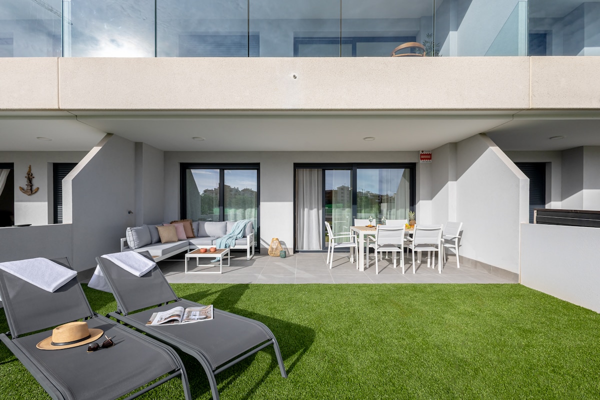 Wishing holidays in contemporary place, few steps from a white sand beach? 'Bianca Beach' is perfect to enjoy in a couple, with family or friends. Built in 2020, this gated residence has 2 pools and is 2 minutes walk from the Mil palmeras beach, sunlit over 10 months a year. This stylish ground floor apartment is fully equipped , filled with light and multicolor LED effects. But the most enjoyable are the terraces, one looking at the pool, the other peaceful with north orientation.