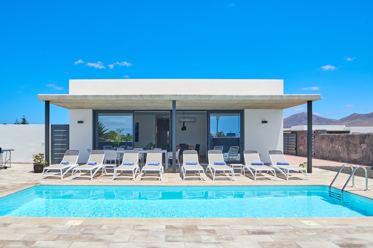 Villa Moderna privada e independiente de Cuatro dormitorios y cuatro baños. Piscina privada, ducha exterior, Jacuzzi, parking privado, tenis de mesa, aire acondicionado, wifi de alta velocidad, alarma, caja fuerte, barbacoa, limpieza durante la estancia, todo incluido en el precio. Ubicada a tan solo 5 minutos a pie hasta llegar al puerto deportivo Marina Rubicón, donde encontrará un gran variedad de servicios: restauración, cafeterías, supermercados, recarga vehículos, Bowling, gasolinera...