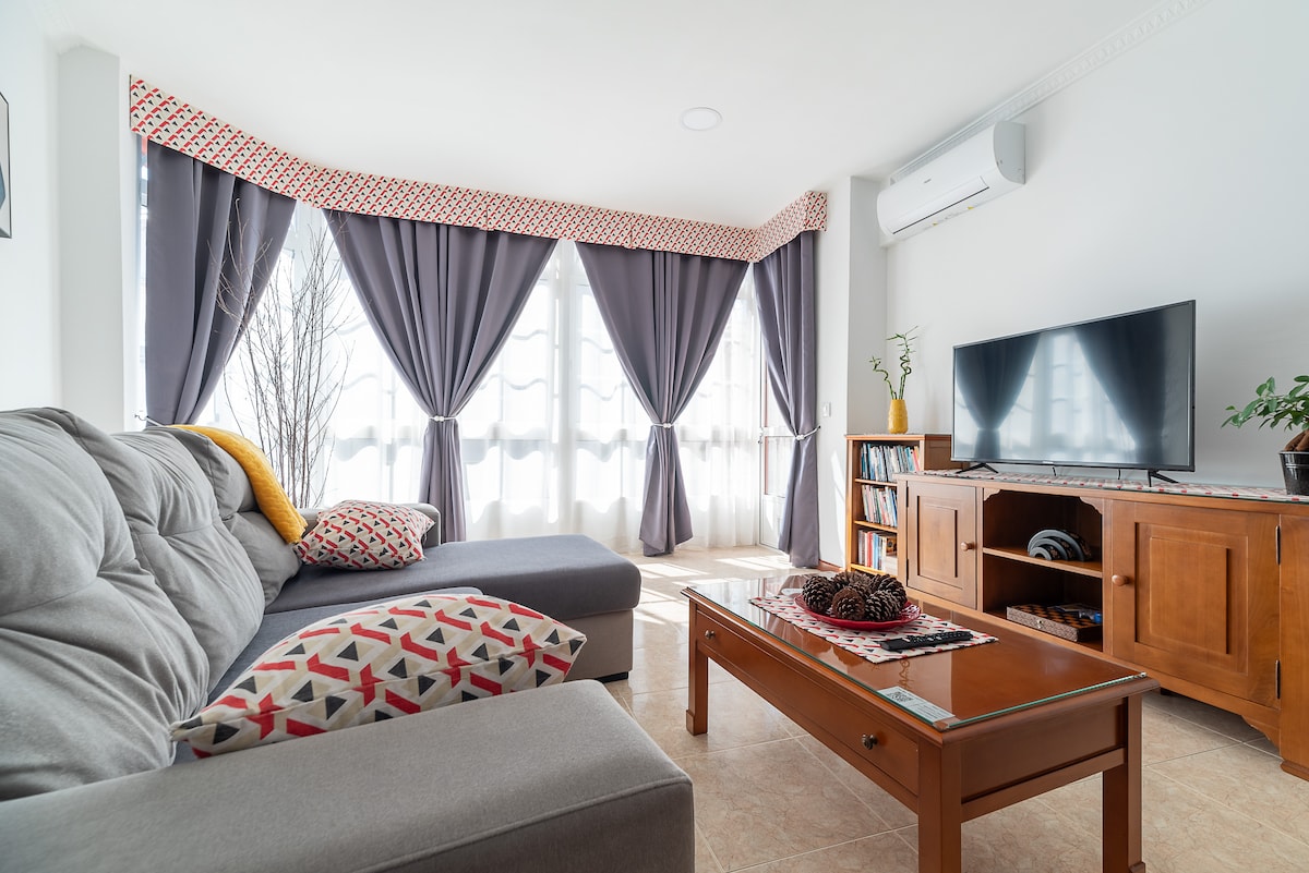 Bucură-te de acest penthouse modern și luminos cu 2 dormitoare din centrul orașului. Cu aer condiționat în fiecare dormitor și în living-sufragerie. La doar două minute de municipalitate, piață, port și piață. Bucătărie americană complet utilată, saltele și lenjerie de calitate. Situat la etajul al patrulea, fără lift, cu acces direct la o terasă comună mare, cu vedere panoramică. Ideal pentru călătorii care apreciază confortul, calitatea și locația. Cu autorizație turistică oficială.